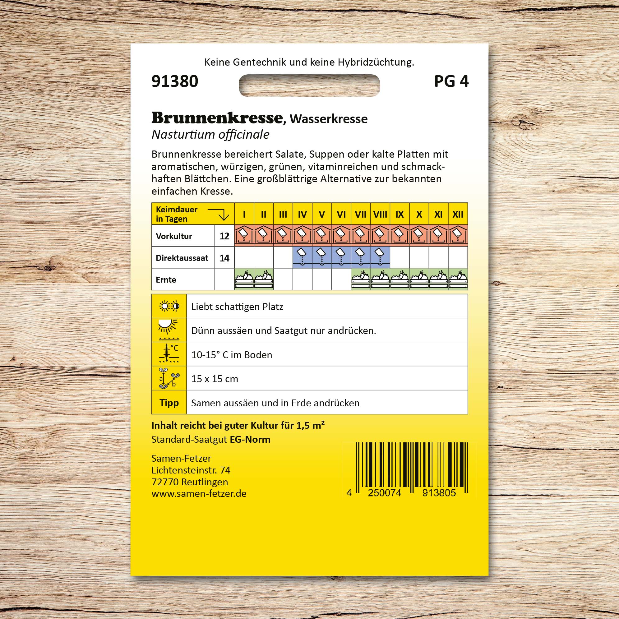 | Aussaat: | April, Mai, Juni, Juli, August |
