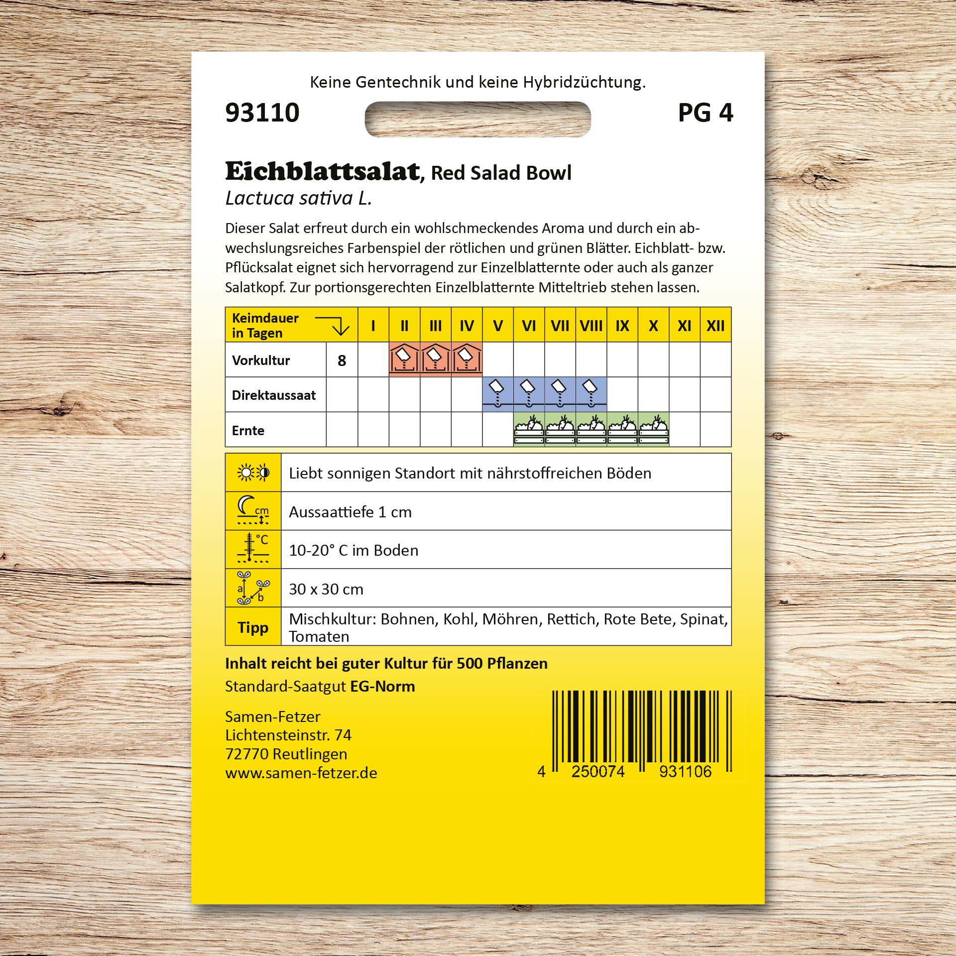 | Aussaat: | Mai, Juni, Juli, August |