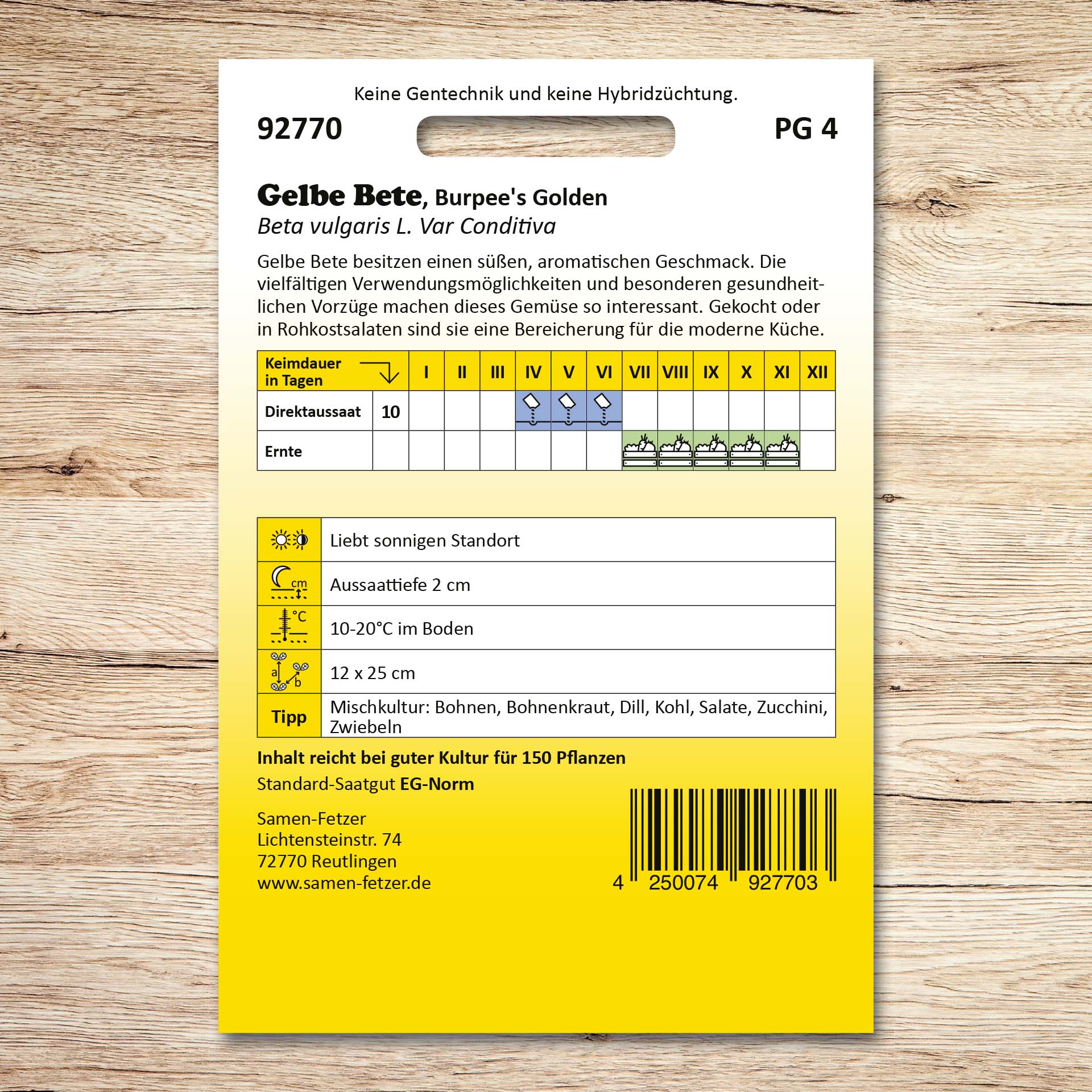 | Aussaat: | April, Mai, Juni |