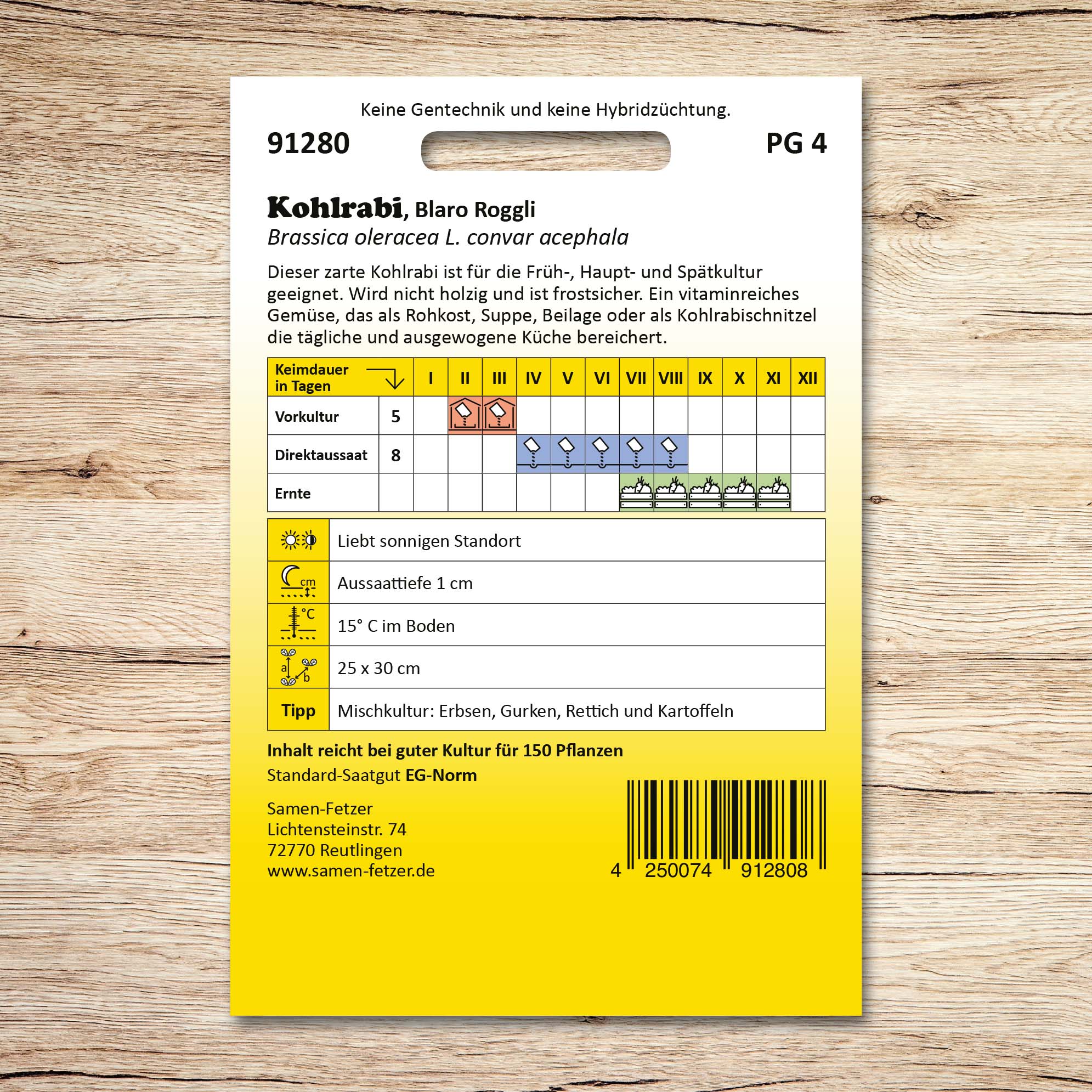 | Aussaat: | April, Mai, Juni, Juli, August |