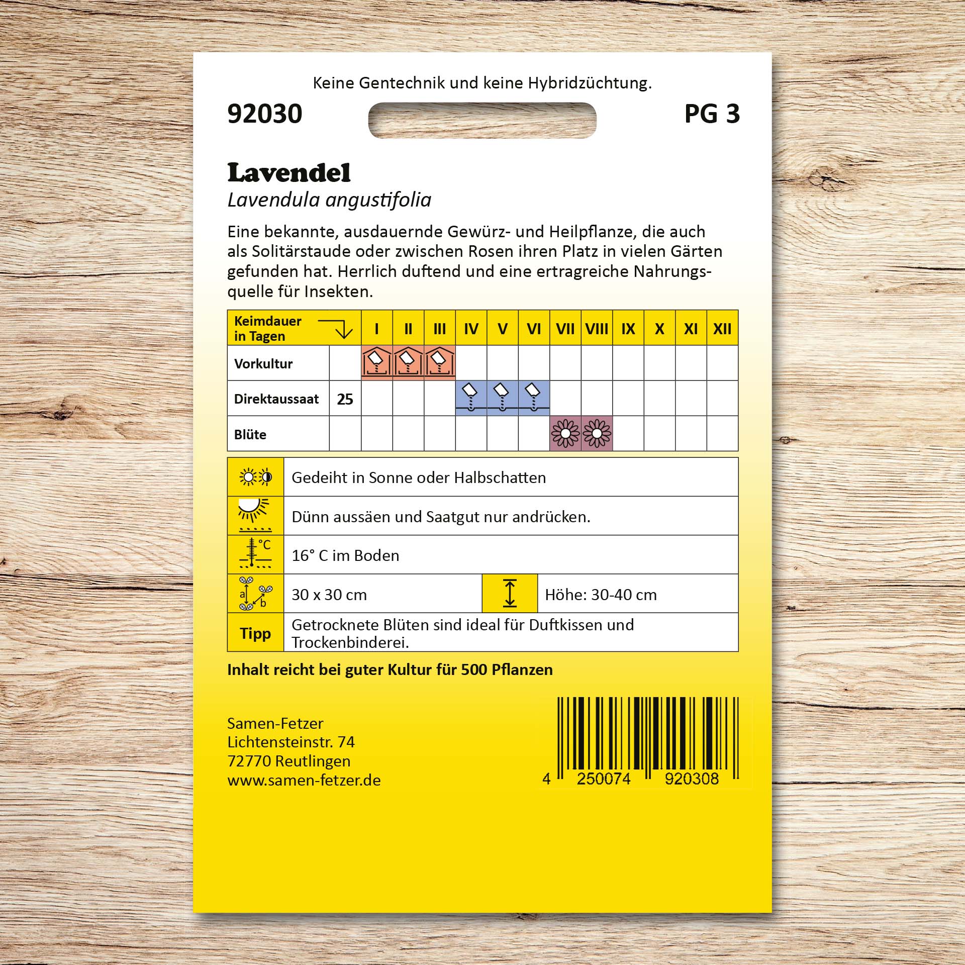 | Inhalt ausreichend für: | 500 Pflanzen |