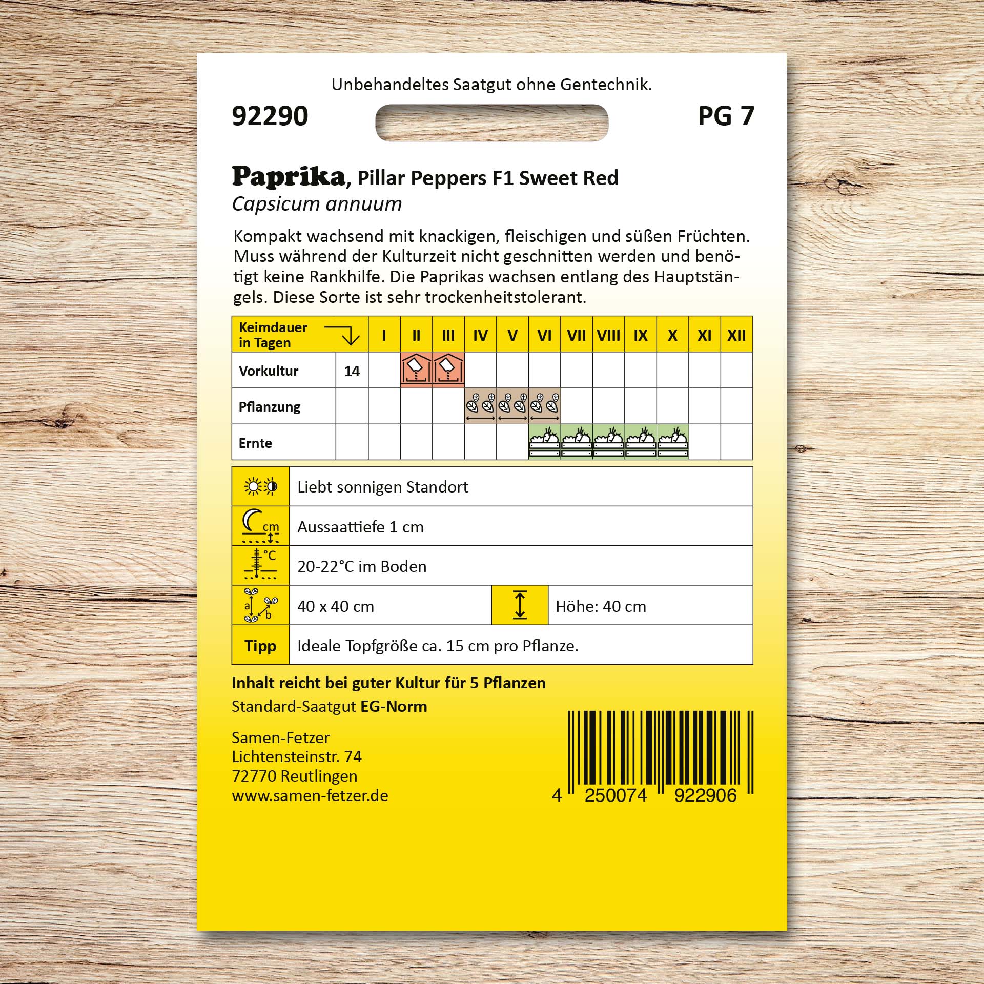 | Inhalt ausreichend für: | 5 Pflanzen |
