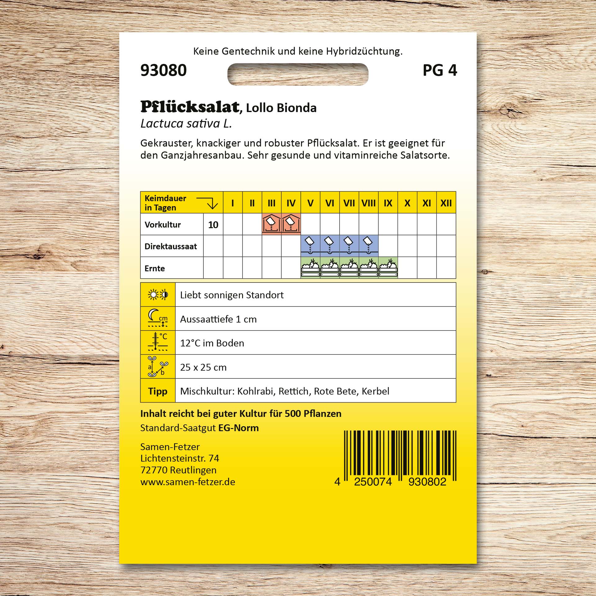 | Aussaat: | Mai, Juni, Juli, August |