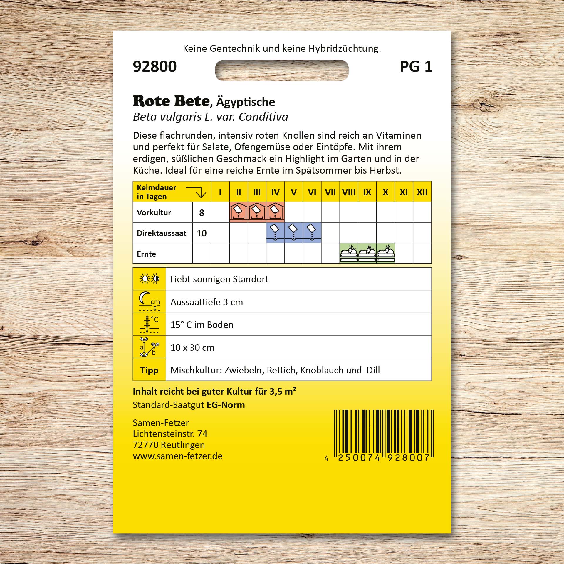 | Aussaat: | April, Mai, Juni, Juli |