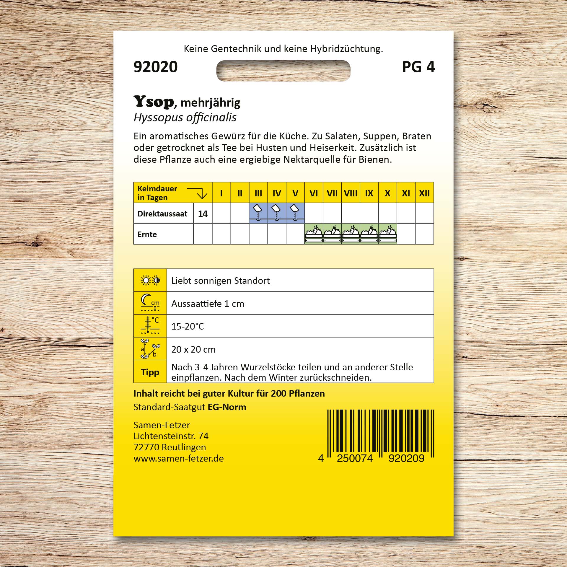| Keimtemperatur: | 15-20 °C |